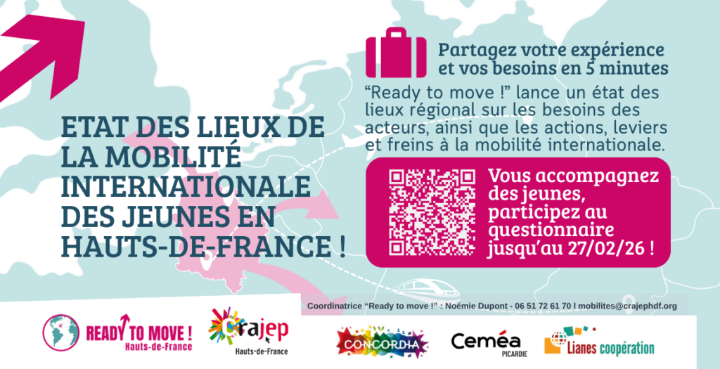 Le Crajep Hauts‑de‑France lance une grande enquête territoriale sur la mobilité internationale des jeunes en région Hauts-de-France. L’objectif est de mieux comprendre les réalités de terrain, d’identifier les freins rencontrés, mais aussi les besoins, ressources et leviers pour renforcer et structurer les projets de mobilité à l’international.