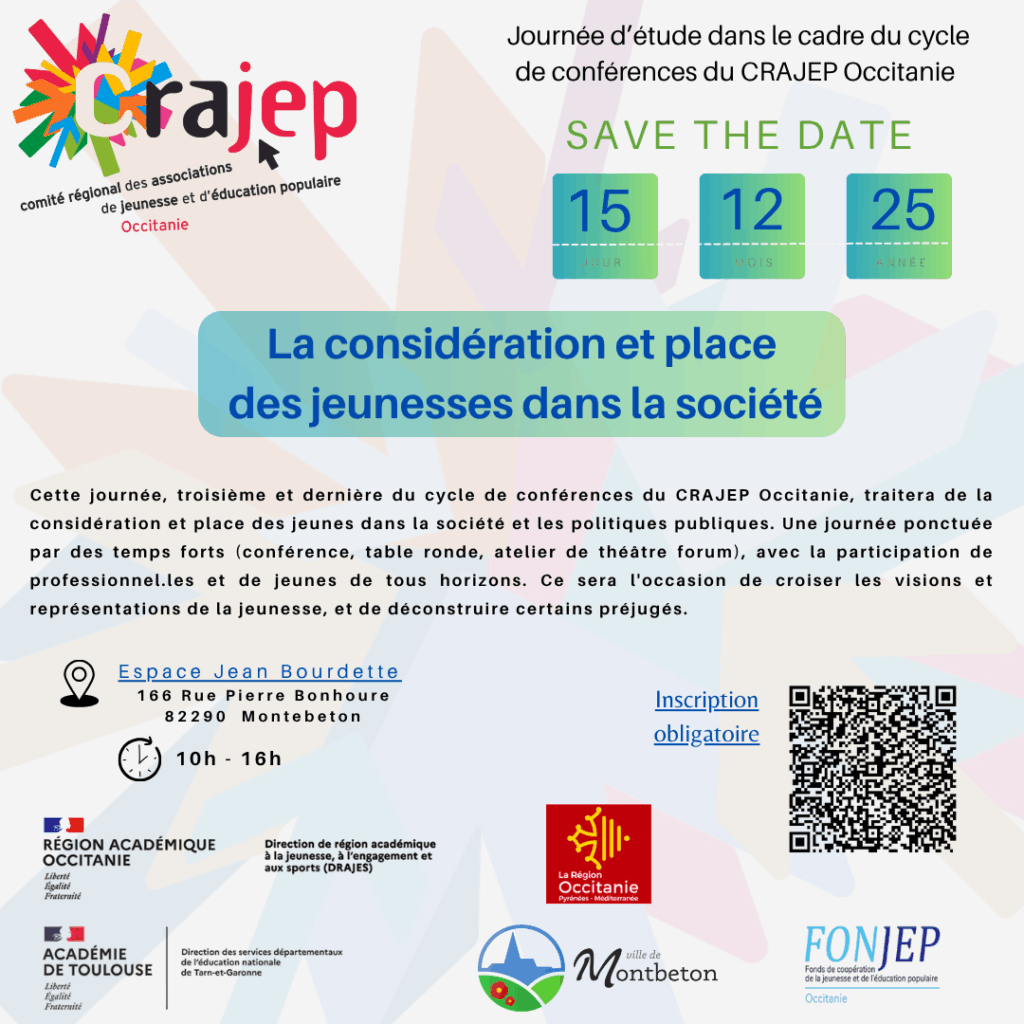 Dans le cadre de son cycle de conférences, le CRAJEP Occitanie organise une journée dédiée au thème de la considération et de la place des jeunes dans la société.