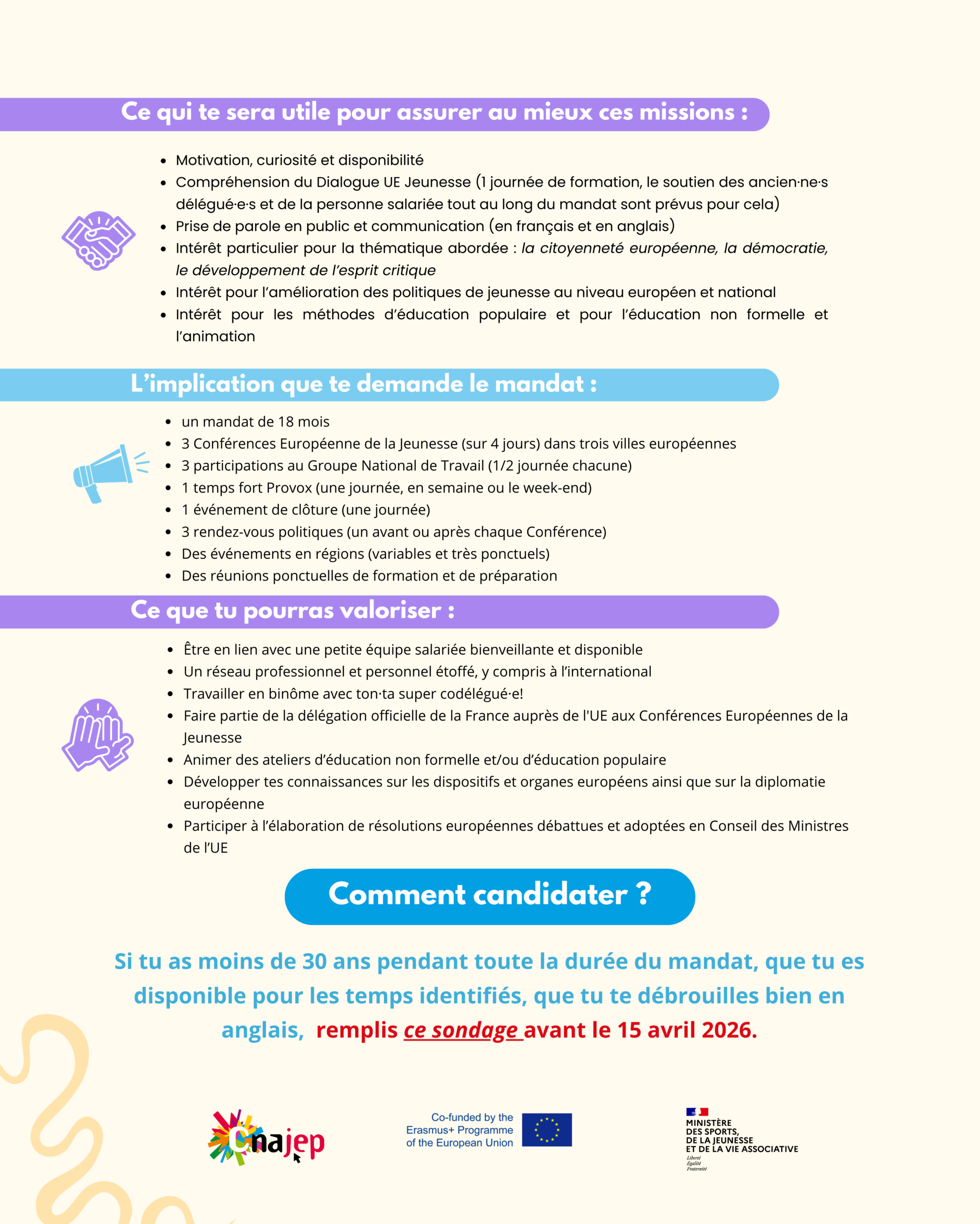 jeunes au niveau français et européen. Le sondage est ouvert jusqu’au 15 avril !